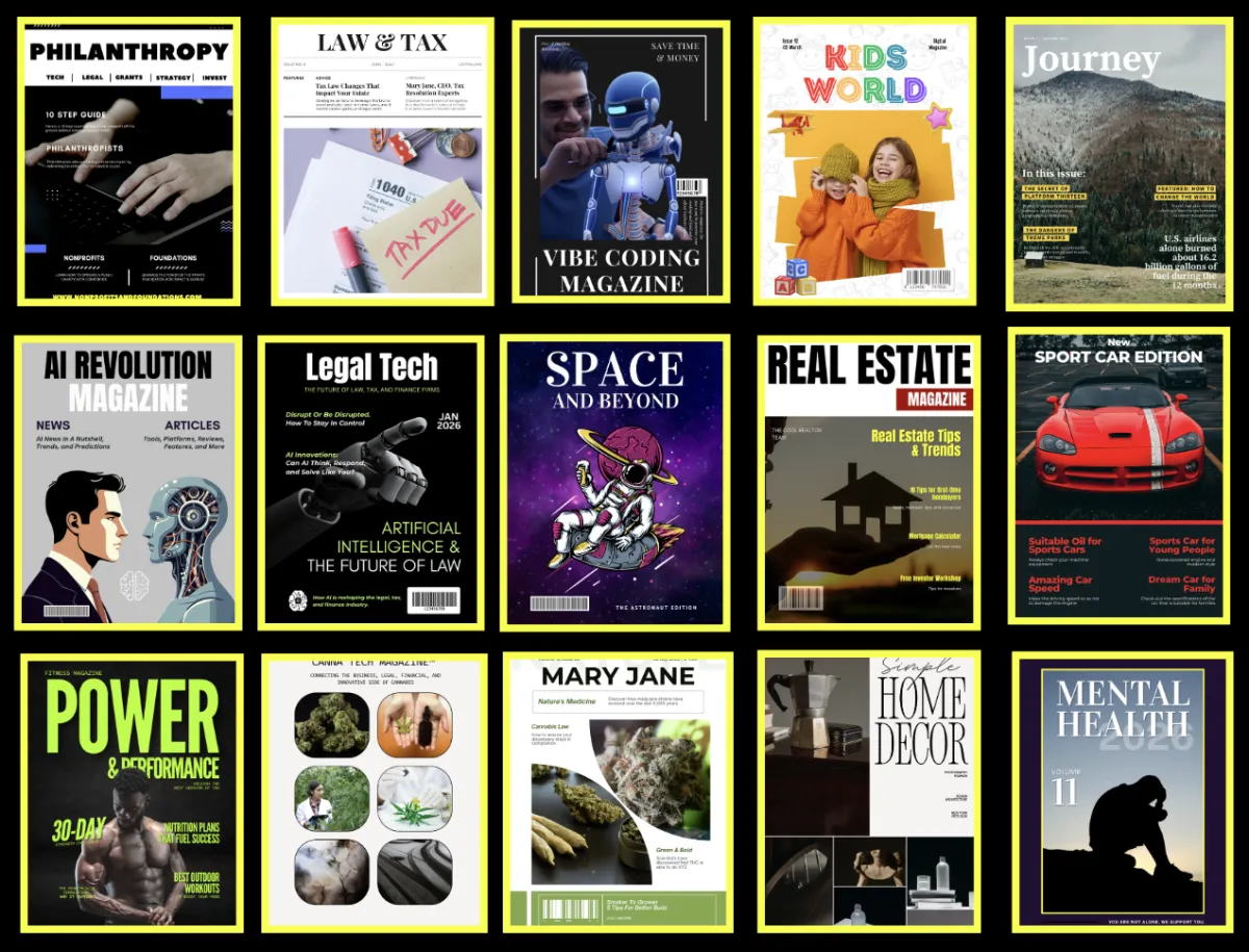 We’re clearing smoke, removing noise, and constructing the next layer of law, tax, technology, strategy, marketing, medical, cannabis, finance, crypto, and satirical publications, magazines, and knowledge infrastructures - the layer AI actually reads.